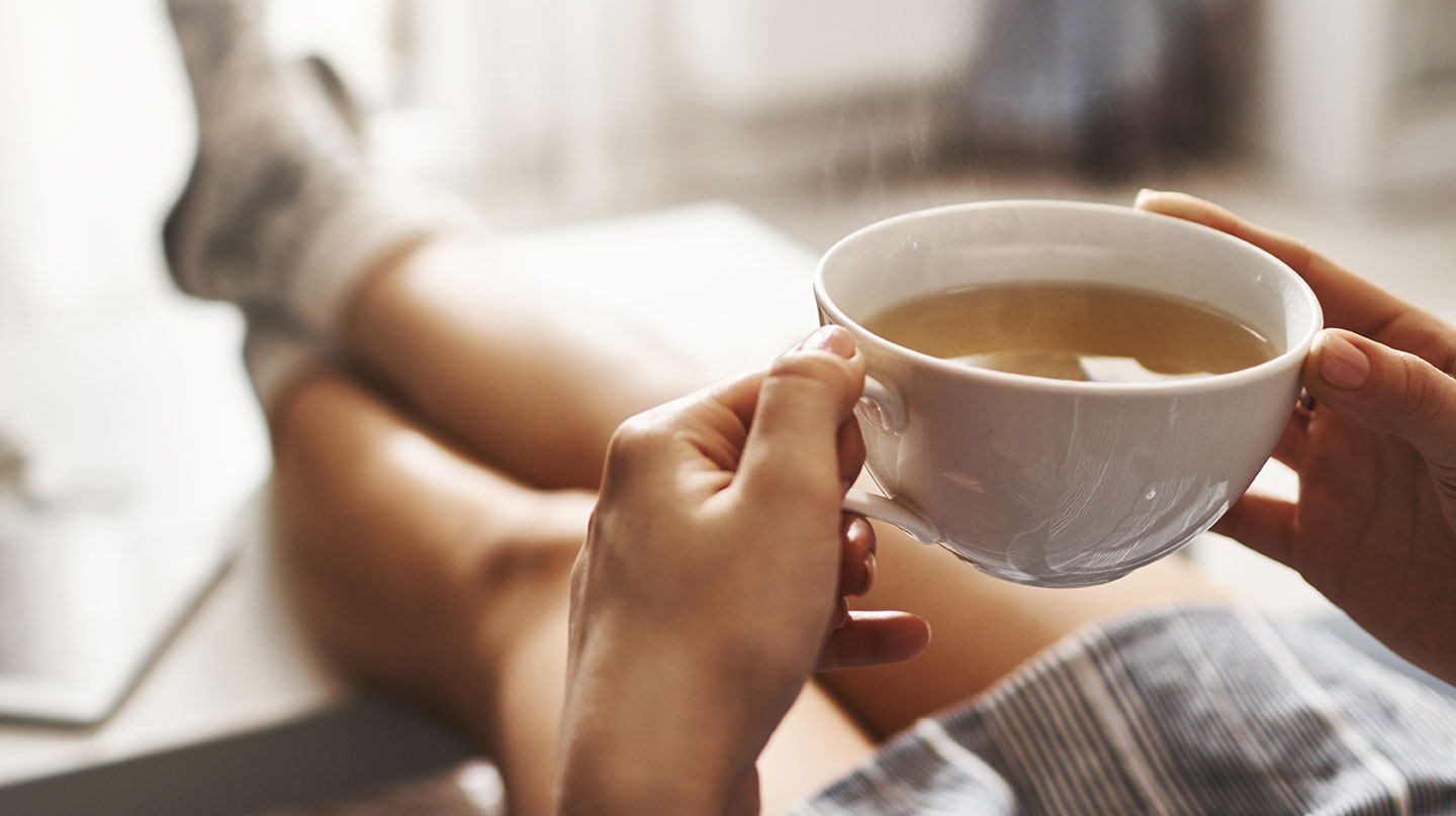 A young man holding a Cup of tea and lemon. Cold, cold, disease. |